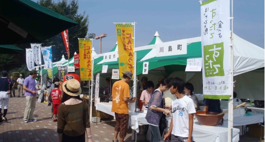 川島町から「すったて」、新座市から「にんじんうどん」、東松山市から「やきとり三金」の3店が出店し、販売をしてました。「やきとり三金」さんはこの暑い中火を起こしててテントの中は猛暑でした!仕事でなければ食べたかったです!