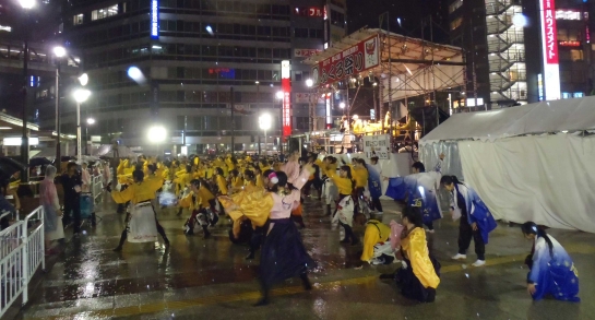 また電車に乗り大塚へ移動。ここは今年から地方車から固定の音響に替わった会場で朝からの交通規制に伴ってセッティングをして本番を行いました。よさこいの他に中学校などの吹奏楽部の演奏もあり大勢のお客様が見ていた会場でした。