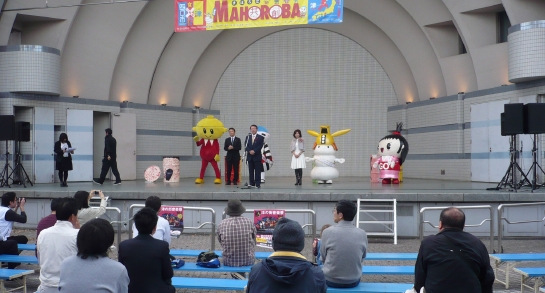 最初は両市のゆるキャラをはじめ、両市長も登場しトークショーを行い四日市、津の観光PRを行いました。