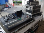 今回のセットは・・・、いつものふくろセットですね! でも今回右端の写真に写っている機材を新しく導入したので持ち込みました。デジタルミキサーLS-9のデジタル特有の「声が細くなる」症状を改善したくて購入しました。でもって結果はみごとに○です!! いいですね〜! 声が太くなりました。これで挨拶も歌もバッチリですね。